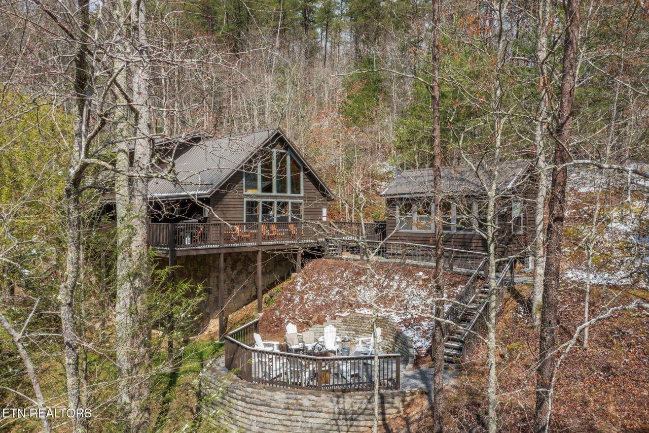 Nestled on a private, wooded lot of over an acre, this Smoky Mountain cabin offers the ultimate blend of seclusion, comfort, and proven investment potential--all just 10 minutes from the entrance to Great Smoky Mountains National Park and approximately 20 minutes to Pigeon Forge and Townsend. With no visible neighboring cabins, you'll truly feel immersed in the peace and beauty of the mountains. Designed for gathering and entertaining, the outdoor space features a newly installed paver fire pit area with seating for eight--perfect for relaxing evenings under the stars. Inside, the spacious open-concept living area offers plenty of room to unwind, complete with an electric fireplace and a 75'' TV mounted above the mantle. The fully equipped kitchen is thoughtfully designed with stainless steel appliances, quartz countertops, tile backsplash, pantry, gas stove, coffee center, and a bar-top for extra seating, making it ideal for hosting family and guests. The cabin offers multiple sleeping areas to comfortably accommodate larger groups, with three sleeping spaces upstairs--including two king beds and a unique ''kiddie theater''--and two additional sleeping areas downstairs, featuring a bedroom with double beds and another with a queen bed. A detached game room provides endless entertainment with air hockey, foosball, arcade games, and a karaoke setup. Additional upgrades include new luxury vinyl plank flooring throughout, a fully encapsulated crawl space, a newly fracked well and new pump system (2023) along with an added water monitoring devise and water storage tanks, water softening system, as well as a propane-powered backup generator for added peace of mind. With strong rental performance--grossing $97,800 in 2024 and $98,840 in 2025--this property is a turnkey investment opportunity with an established rental history and excellent guest reviews. Whether you're looking for a high-performing short-term rental or a private mountain retreat, this cabin delivers on every level.